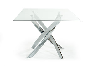 This modern dining table is a simple and sleek addition to your dining space. With the glass top, messes are easily cleanable and gives a hint of sophistication to your dining room. The small table is perfect for intimate gatherings with family and friends. With the overall neutral color, this dining table can easily be dressed up or down.