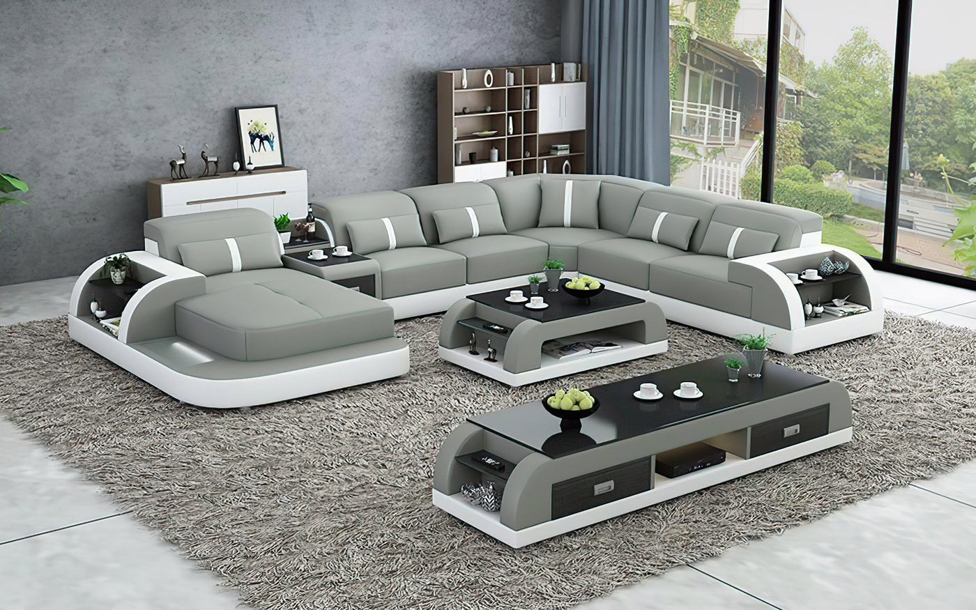 The Blaylock Modern Sectional Sofa with LED Light is handmade with top grain Italian leather in light grey and white color. It features a sleek modular design that can be customized to fit your unique space, whether it’s your living room or family room. The armrests are included to hold drinks and personal items while each top headrest is adjustable for maximum comfort. The two storage spaces are big enough to display books or decorative items while the small console holds drinks and remotes. The spacious chaise is perfect for resting after a busy day while the side of this leather sectional is illuminated by an LED light that can be optionally upgraded to multi-color lights that can be controlled by a wireless remote. Choose your configuration left hand facing or right-hand facing chaise to customize your desired design. This sleek, comfortable sectional is a must-have for every contemporary home.