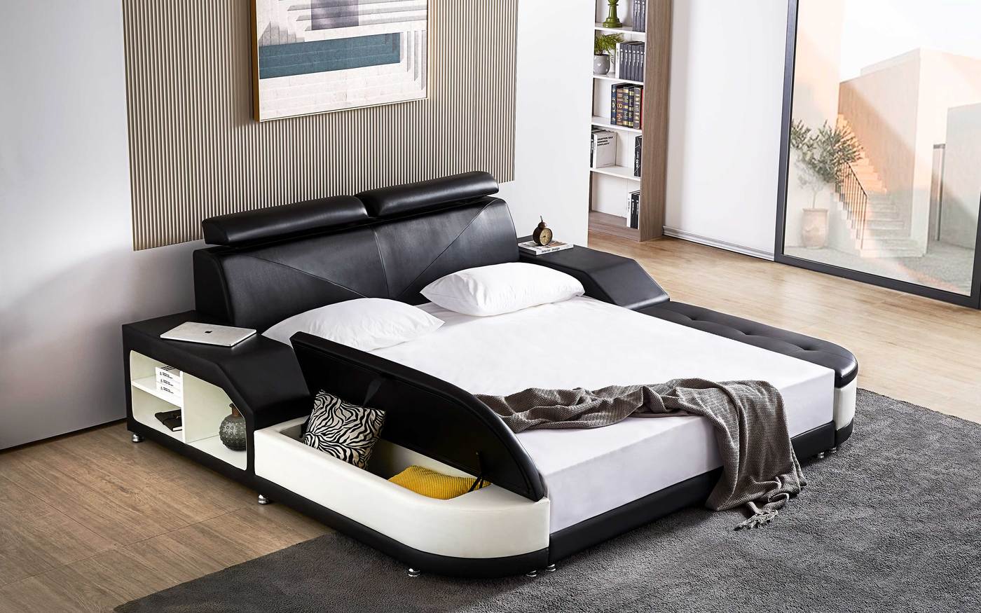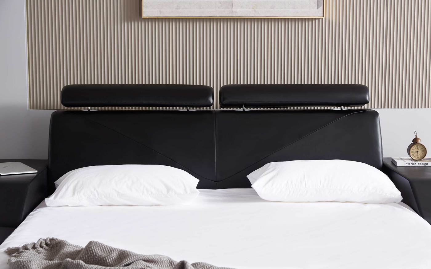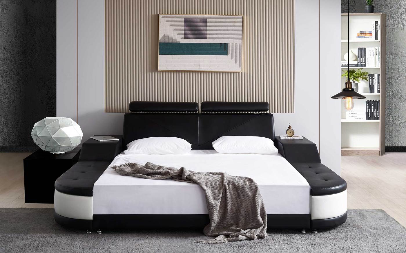The hand-made leather smart bed contains both discreet elegance and endless storage space! Its high wingback headboard feels luxurious while still being modern. The matching nightstand provides built-in shelves that are extremely convenient for you to store books and magazines. Besides providing spare seating to your bedroom, the ottoman with storage is perfect for you to hide away extra throw blankets and pillows. This leather bed is available in both Italian leather and bonded leather. Choose your preferred color leather from a selection of more than 15 distinct colors! You can also customize it based on your preference!