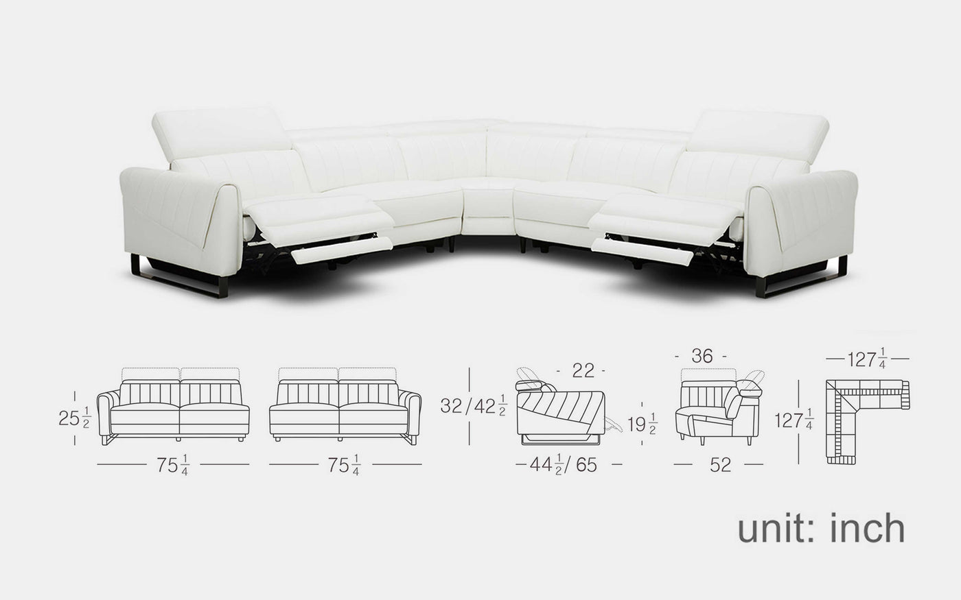 - Sets Include 1 Sectional (1*LAF Chair with Power Recliner + 1 Armless Chair + 1 Corner+ 1*Armless Chair with Power Recliner + 1*RAF Chair with Power Recliner).