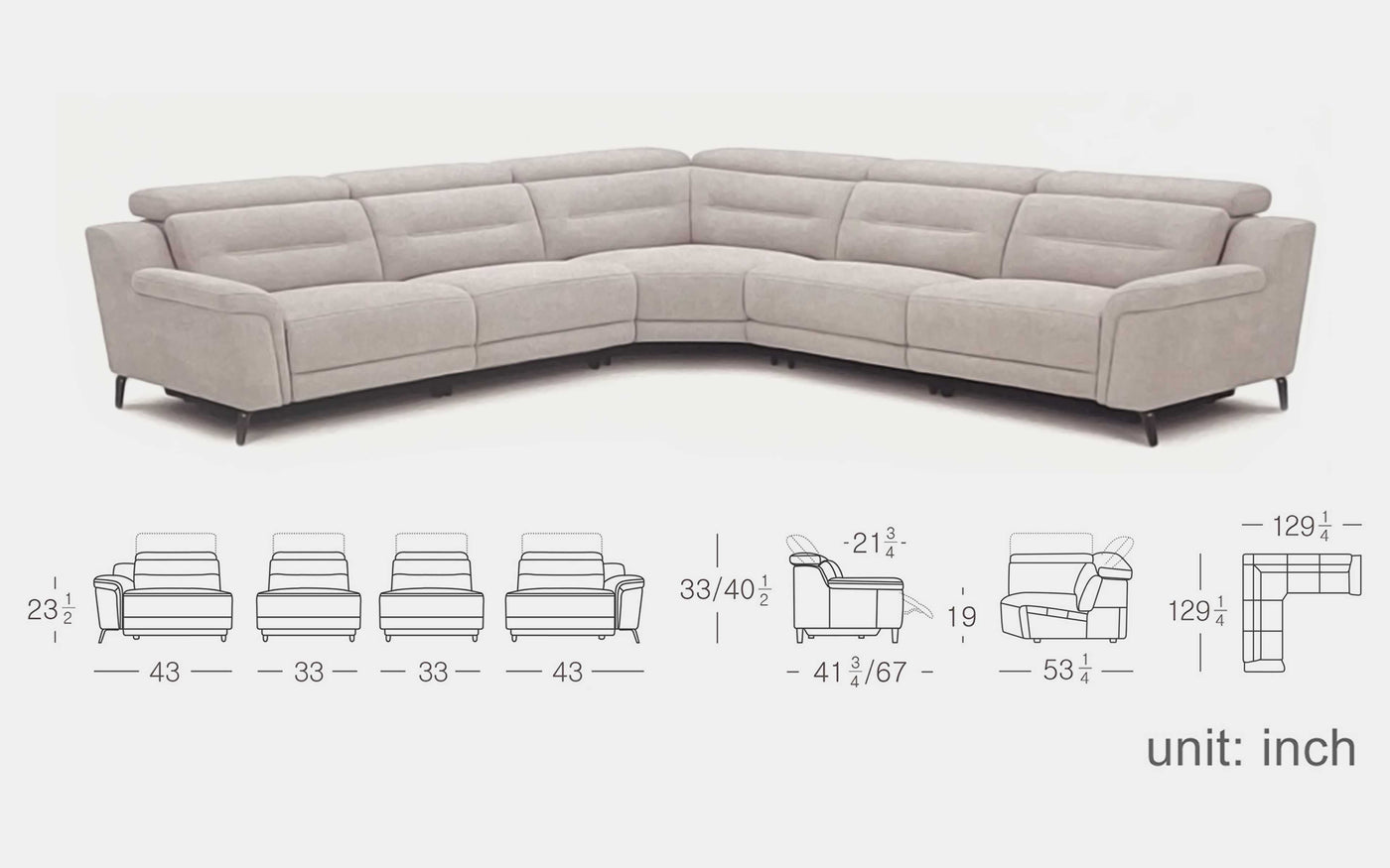 • Default Sets Include 1 Sectional (1*LAF Chair with Power Recliner + 1*Armless Chair with Power Recliner + 1*Corner + 1*Armless Chair + 1*RAF Chair with Power Recliner). Decorative items are not included.