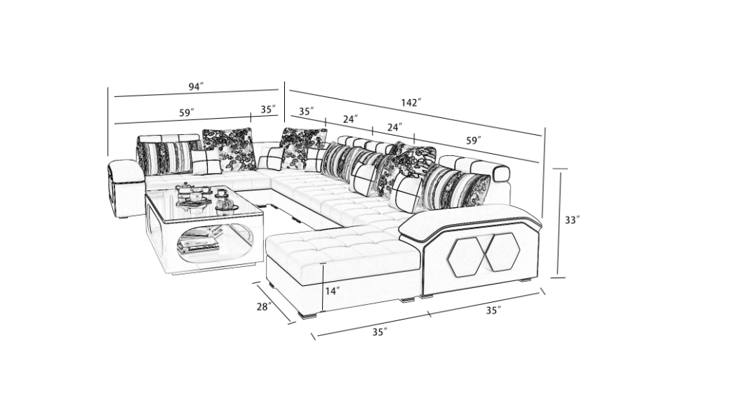 The plush backrest cushions are attached to adjustable cylindrical bolster pillows that help keep them in place and prevent them from sliding down. The 5" foam seat cushions are comfortably firm and can be washed along with the backrest. Detachable padded armrests add more comfort or can be taken off to create a more formal look. Storage on both ends of the sectional add style and function as the 4-piece octagonal shape stools can be included. Frame material is made of solid wood to ensure you have a long-lasting sectional. This sleek, modern sectional is a must have for every contemporary home. To complete the look of your living space we recommend adding the armless chair and coffee table. Cup holders and USB ports are recommended for larger families to optimize maximum enjoyment. An additional bed function makes a great movie night with the family or space for unexpected guests. With the generous size of this sectional, family and friends will gladly socialize in comfort