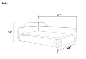 Dream Away with this space saving two toned Bed with Storage underneath. Headboard and sideboard which can be pushed to the wall. Available in a Twin, Full and Queen size in Italian Leather and Bonded Leather in different colors.