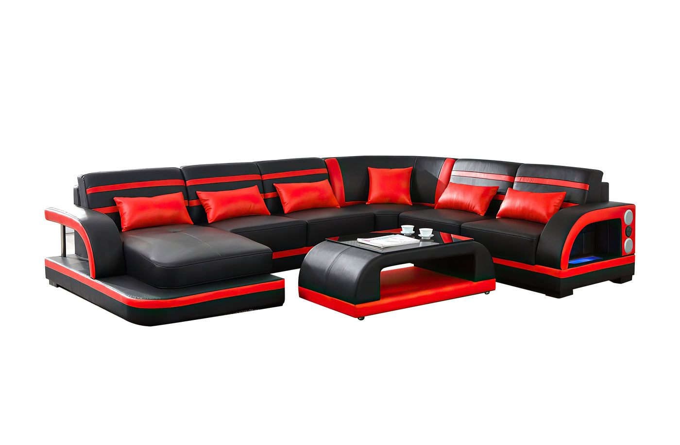 • Default sets Include 1 Sectional (1*LAF/RAF Chaise + 1* Armless Loveseat + 1*Corner +1*RAF/LAF Loveseat), 2 Speakers, 6 Throw Pillows, LED light with the switch.