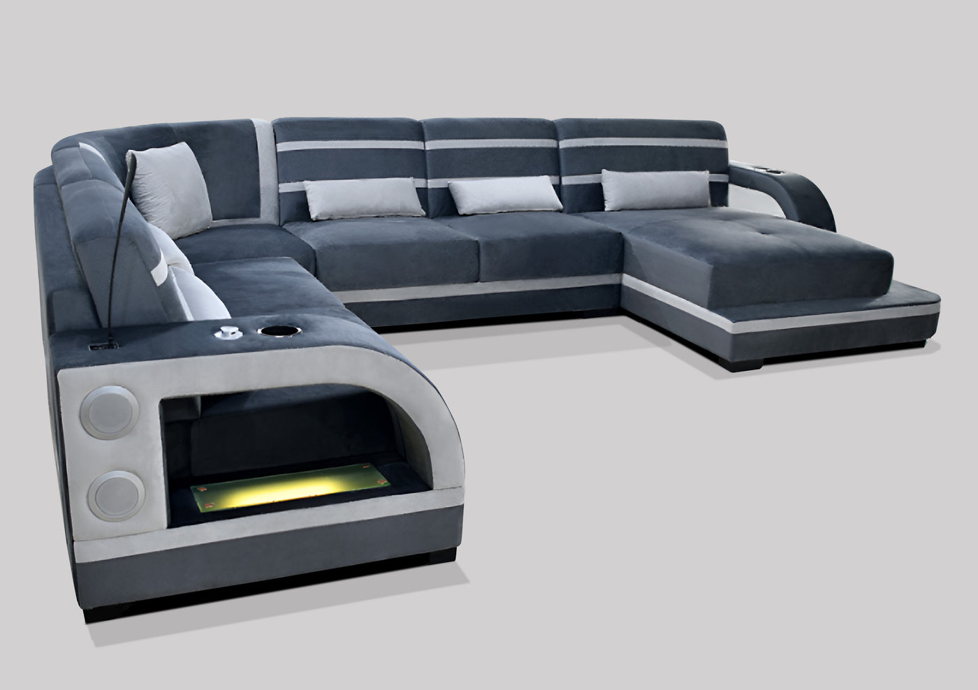 Grando Modern Sectional with Speaker & Wireless Charger & LED Lights