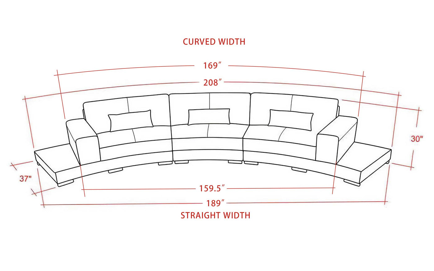 The Frida Modern Curve Shape Leather Sectional is available in 10 different colors of genuine or bonded leather. This sectional features storage space at both ends of the sectional, perfect for books or decorative items. This circular shaped design is perfect for a large living space. It instantly opens the room and invites guests to relax. This modern leather sectional is sleek yet contemporary and will accent other pieces in the room and tie it together beautifully. To complete the look of your living space we recommend adding the armless chair and coffee table. Cup holders and USB ports are recommended for larger families to optimize maximum enjoyment. An additional bed function makes a great movie night with the family or space for unexpected guests. With the generous size of this sectional, family and friends will gladly socialize in comfort.