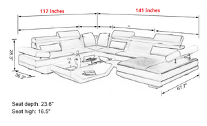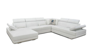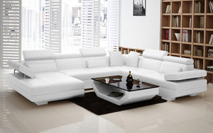 The Merdell Modern U-Shape Leather Sectional is handmade with genuine Italian or bonded leather. Choose your preferred color leather from a selection of 10 distinct colors. Each top headrest is adjustable along with the armrests. This modern sectional is a stylish and chic addition to your living space. To complete the look of your living space we recommend adding the armless chair and coffee table. Cup holders and USB ports are recommended for larger families to optimize maximum enjoyment. An additional bed function makes a great movie night with the family or space for unexpected guests. With the generous size of this sectional, family and friends will gladly socialize in comfort.