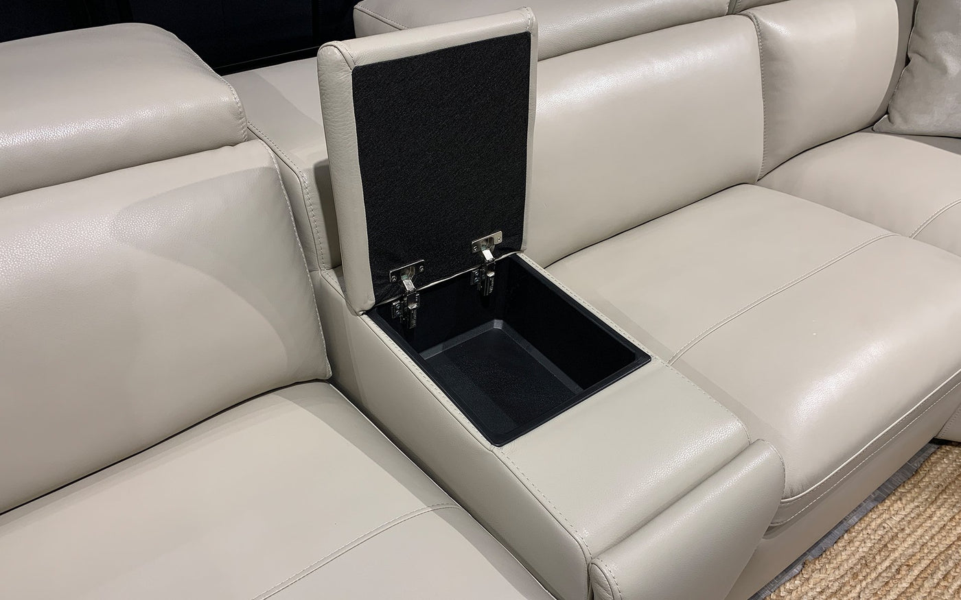 In Stock Motique Modern Leather Sectional with Recliner