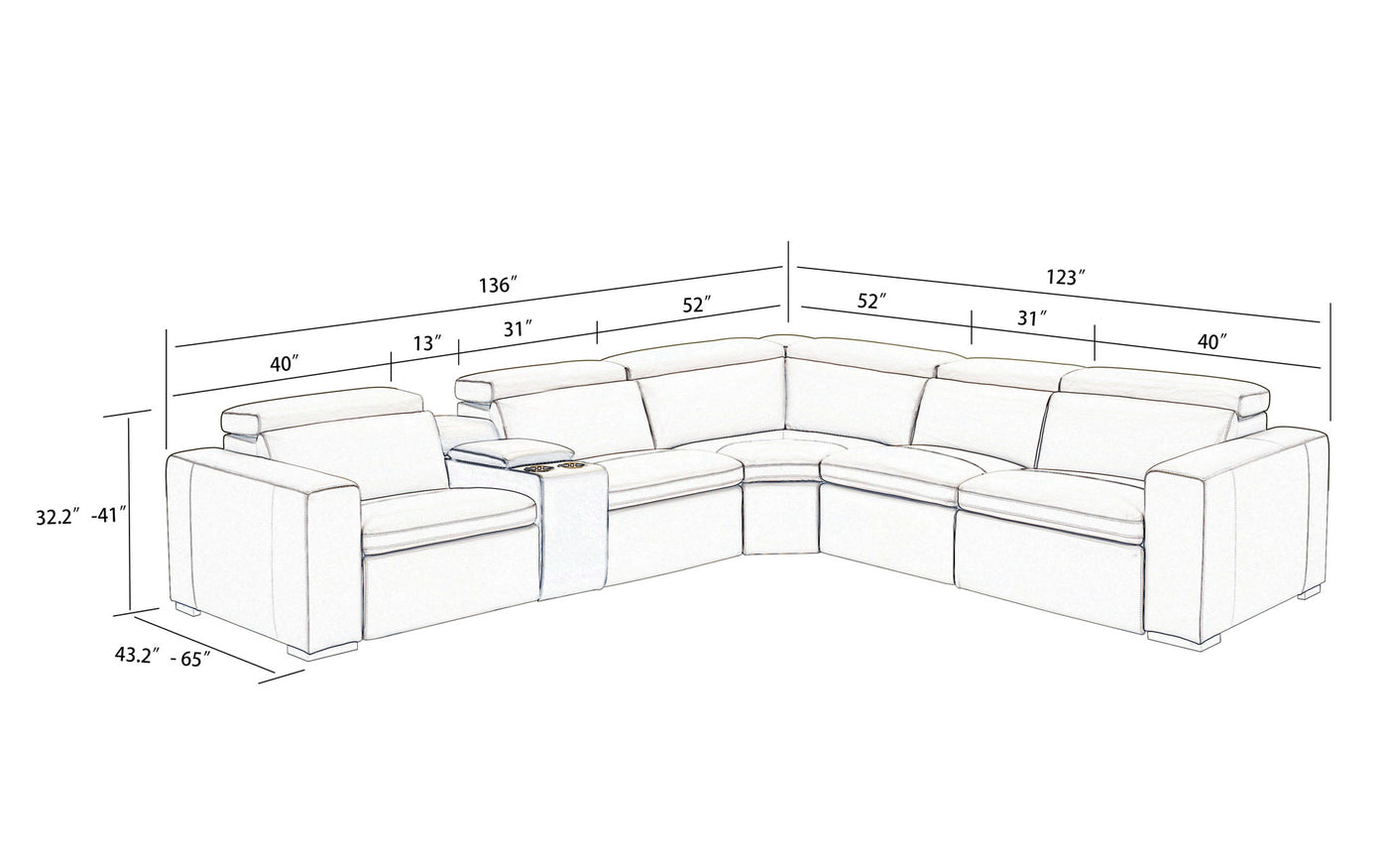 • Default Sets Include 1 Sectional (1*LAF Chair with Power Recliner + 1*Console table + 1*Armless Chair with Power Recliner + 1*Corner + 1*Armless Chair + 1*RAF Chair with Power Recliner).