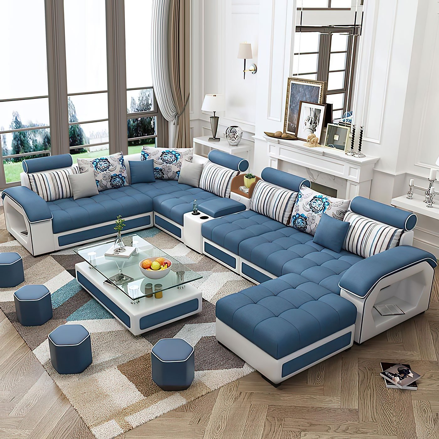 Hello Rachel. Thank you for your review! We are thrilled to hear that you are enjoying the Selena Lapis & Snow Modular Tufted Sectional With Console in your living room. The vibrant Lapis and Snow combination is sure to have brightened up the space and we are very glad to know that it is both comfortable and configurable. We appreciate your recommendation and thank you for choosing Jubilee Furniture!