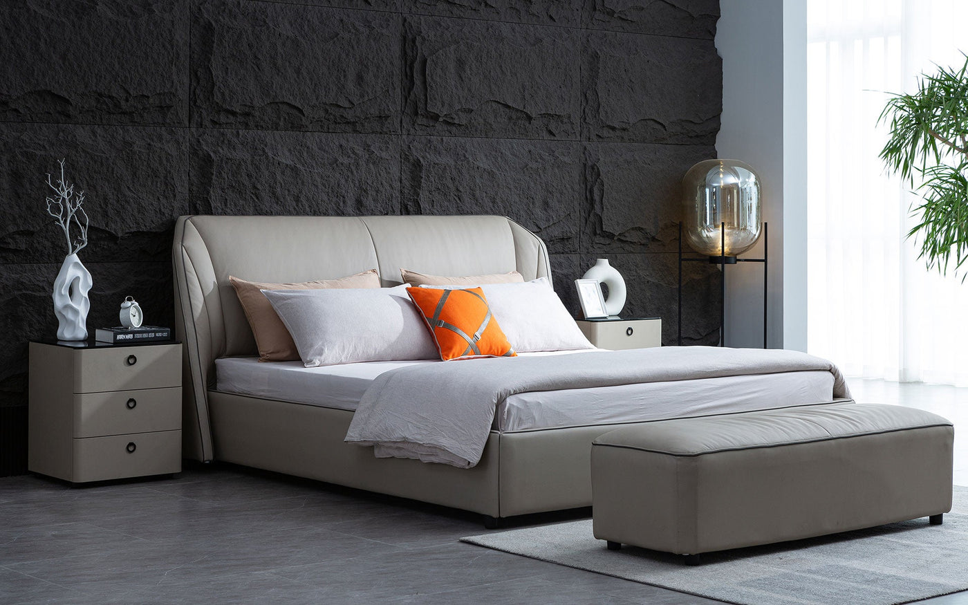Elevate your bedroom with the Luna Modern Leather Platform Bed, a stunning combination of style and comfort. This leather bed boasts a chic and contemporary design with a premium-quality frame and sumptuous leather upholstery. The luxurious headboard is generously cushioned for maximum comfort, and the sophisticated upholstery adds a touch of elegance to any bedroom. The platform design ensures mattress stability while providing a clean and minimalist look. Available in a range of stylish colors, the Luna Modern Leather Platform Bed is the perfect addition to any modern bedroom.
