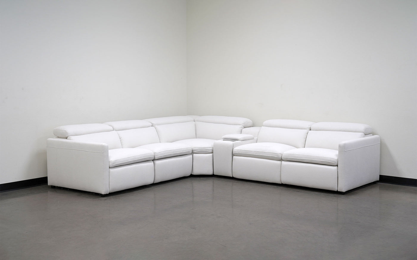 In Stock Maison Leather Recliner Sectional Sofa With Console