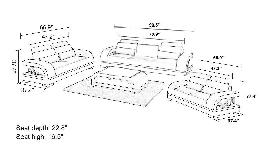- Sofa sets Include 1*Sofa, 2*Loveseat.