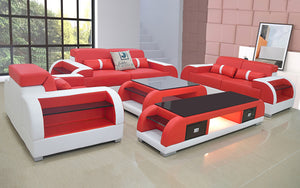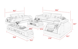 The Piliu Leather Sofa Set with Side Storage is handmade with genuine Italian or bonded leather. Choose your preferred color leather from a selection of 10 distinct colors. This set features multiple built in storage spaces big enough to display books or decorative items. Each top headrest is adjustable. This modern sofa set is a stylish and chic addition to your living space. To complete the look of your living space we recommend adding the matching coffee table. With the generous size of this sofa set, family and friends will gladly socialize in comfort.