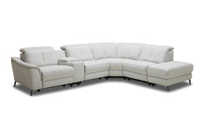 The Rium Modern Fabric Sectional with Recliner is made of soft contorting fabric with a modern style. It includes two reclining chairs and a corner. The feet are made of metal so the sectional is durable and stable. It has six adjustable headrests, and the backrest is very user-friendly. This sofa is ideal for large gatherings and movie nights. Perfect for a contemporary home and lovers of comfortable lounging.