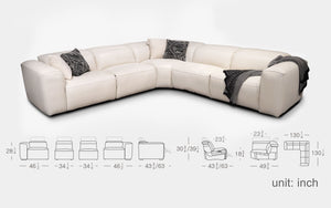 • Sets Include 1 Sectional (1*LAF Chair with Power Recliner + 1 Armless Chair + 1 Corner+ 1*Armless Chair with Power Recliner + 1*RAF Chair with Power Recliner).
