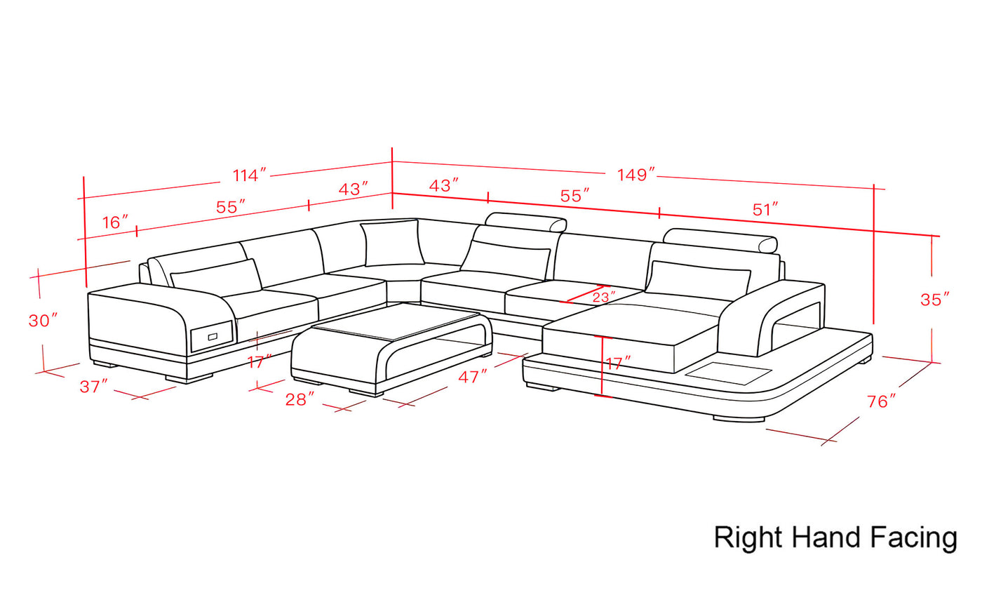 {"id":6437427609749,"title":"Everly Italian Leather Sectional-Red \u0026 Black","handle":"special-deal-black-white-everly-leather-sectional-with-led-lights-and-add-ons","description":"\u003cp style=\"text-align: center;\"\u003e \u003c\/p\u003e\n\u003c!-- TABS --\u003e\n\u003ch5\u003eGallery\u003c\/h5\u003e\n\u003cdiv id=\"9d01d533-cd0f-41ed-a53b-75ee59f66873\" class=\"robin-pro\"\u003e\u003c\/div\u003e\n\u003ch5\u003eDescription\u003c\/h5\u003e\n\u003ch2 style=\"text-align: center;\"\u003eWhite \u0026amp; White Everly Italian Leather Sectional \u003c\/h2\u003e\n\u003cdiv style=\"text-align: center;\"\u003e\n\u003cstrong\u003e\u003cspan style=\"color: #ff2a00;\"\u003e \u003c\/span\u003e\u003c\/strong\u003e\u003cstrong\u003e\u003cspan style=\"color: #ff2a00;\"\u003eIn Stock, can be shipped out in 5-14 days \u003c\/span\u003e\u003c\/strong\u003e\n\u003c\/div\u003e\n\u003cp\u003e\u003cspan style=\"color: #ff2a00;\"\u003e\u003cstrong\u003e\u003c\/strong\u003e\u003c\/span\u003e\u003cspan style=\"color: #ff2a00;\"\u003e\u003cstrong\u003e\u003c\/strong\u003e\u003c\/span\u003eThe Everly Leather Sectional with LED lighting is handmade with genuine Italian or bonded leather. This large leather couch is sleek and suits any modern living space. Its modular design can be customized to a configuration that fits your unique space - whether it is your living room or family room. Armrests are included to hold drinks and personal items. Each top headrest is adjustable. The storage space alongside the chaise is big enough to display books or decorative items. The spacious chaise is perfect to lay down and rest after a busy day. There is a small console to store away remotes and coasters or hold your TV snacks. The sides of this leather couch are illuminated by multi-color lights controlled by a wireless remote. Choose your configuration left hand facing or right-hand facing chaise to customize to your desired design. \u003cstrong\u003eThis sleek, comfortable sectional is a must have for every contemporary home\u003c\/strong\u003e. To complete the look of your living space we recommend adding the armless chair and coffee table. Cup holders and USB ports are recommended for larger families to optimize maximum enjoyment. An additional bed function makes a great movie night with the family or space for unexpected guests. With the generous size of this sectional, family and friends will gladly socialize in comfort.\u003c\/p\u003e\n\u003cul\u003e\n\u003cli\u003e\n\u003cspan\u003e\u003c\/span\u003e\u003cspan style=\"color: #ff2a00;\"\u003e\u003cstrong\u003eSets Include 1 Sectional  (1*LAF Chaise + 1*Armless Loveseat + 1*Corner + 1*RAF Loveseat) +  4 Throw Pillows + LED Light with remote control.\u003c\/strong\u003e\u003c\/span\u003e\n\u003c\/li\u003e\n\u003cli\u003eSKU: G8013\u003c\/li\u003e\n\u003c\/ul\u003e\n\u003cp\u003e\u003ciframe width=\"448\" height=\"253\" src=\"https:\/\/www.youtube.com\/embed\/1hCzv1W7Sn4\" frameborder=\"0\" allow=\"accelerometer; autoplay; clipboard-write; encrypted-media; gyroscope; picture-in-picture\" allowfullscreen=\"\"\u003e\u003c\/iframe\u003e\u003c\/p\u003e\n\u003ch5\u003eDimension\u003c\/h5\u003e\n\u003cp\u003e\u003cimg alt=\"\" src=\"https:\/\/cdn.shopify.com\/s\/files\/1\/0282\/9562\/6845\/files\/Dimention-L.jpg?v=1708540525\"\u003e\u003cimg src=\"https:\/\/cdn.shopify.com\/s\/files\/1\/0282\/9562\/6845\/files\/Dimention-R.jpg?v=1708540540\" alt=\"\" data-mce-fragment=\"1\" data-mce-src=\"https:\/\/cdn.shopify.com\/s\/files\/1\/0282\/9562\/6845\/files\/Dimention-R.jpg?v=1708540540\"\u003e\u003c\/p\u003e\n\u003ch5\u003eDetail Info\u003c\/h5\u003e\n\u003cp style=\"text-align: center;\"\u003e\u003cstrong\u003eJubilee Furniture Choice in Leather\u003c\/strong\u003e\u003c\/p\u003e\n\u003cp\u003eJubilee Furniture strives to deliver the best quality leather that we use in our furniture whether it be a sectional, sofa set and bedroom sets. We also value our customers input and comments. Based on the majority of our clients that have purchased our Italian leathers, their feedback has always been good – as in “happy with the quality of the leather,” “it’s very soft to the touch,” “love the modern design with the power reclining and adjustable headrest,” and much more. (please check our website for more comments). But of course, we want to accommodate our other clients that would like to spend within their budgets and has opted for bonded leather.  \u003c\/p\u003e\n\u003cp\u003e\u003cimg src=\"https:\/\/cdn.shopify.com\/s\/files\/1\/0282\/9562\/6845\/files\/leather_large.png?v=1590446691\" alt=\"\" style=\"display: block; margin-left: auto; margin-right: auto;\"\u003e\u003c\/p\u003e\n\u003cp\u003e                               (Top Grain Italian Leather Sectional)\u003c\/p\u003e\n\u003cp\u003e\u003cstrong\u003e \u003c\/strong\u003e\u003c\/p\u003e\n\u003cp\u003e\u003cstrong\u003eItalian Leather\u003c\/strong\u003e\u003c\/p\u003e\n\u003cp\u003eJubilee Furniture has partnered with an Italian company that produces one of the best Italian leather. It is then shipped to our manufacturers in China. It is called Italian leather because of the tanning method using natural, vegetable ingredients that has been invented in the Tuscan tanneries in Italy. This is what makes the leather resistant, elastic and smooth. We carry a variety of furniture that are Italian leather in different colors. Special order is also available.\u003c\/p\u003e\n\u003cp\u003e\u003cstrong\u003eBonded Leather\u003c\/strong\u003e\u003c\/p\u003e\n\u003cp\u003eIn Jubilee Furniture, we recommend for our customers with big families and with pets, Bonded leather that works well on furniture in high-traffic areas like family room or even living room. We make sure that process of the bonded leather our manufacturers use contains low levels of environmentally unsafe formaldehyde since it does not undergo chemical tanning and is therefore suitable for people with leather allergies. Lastly, bon