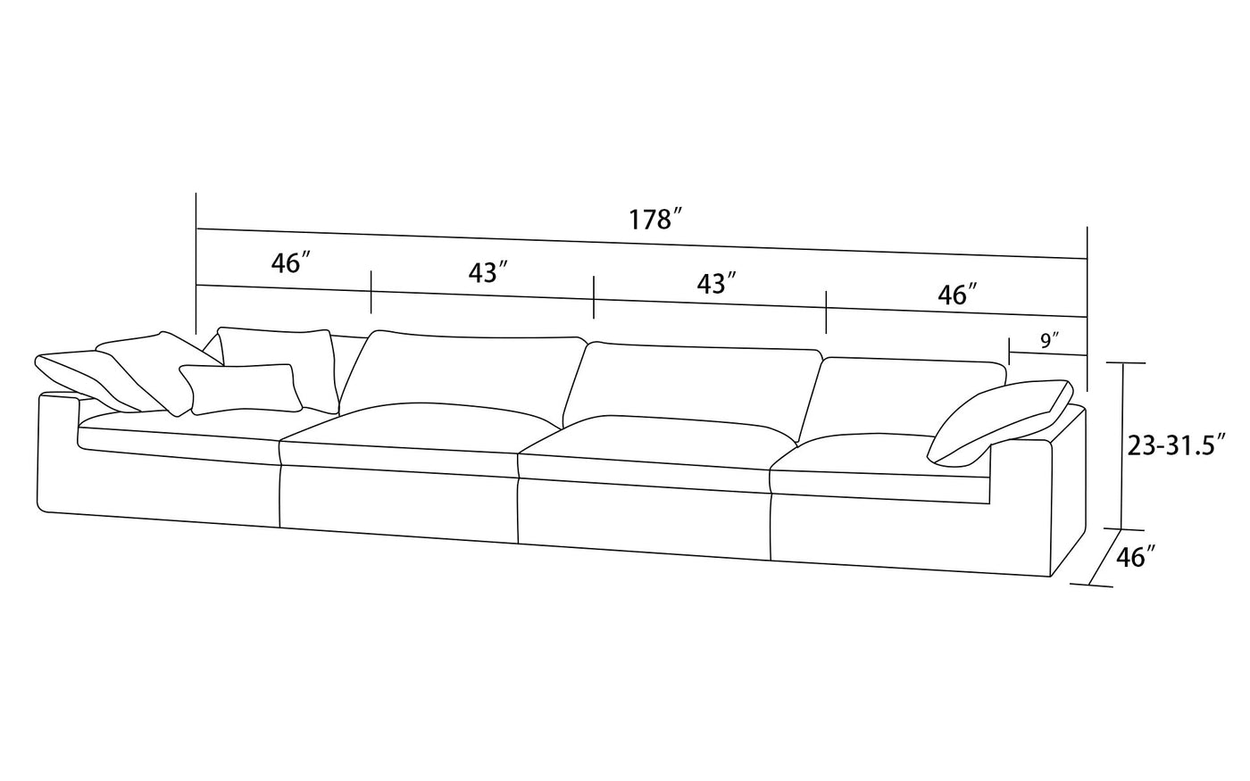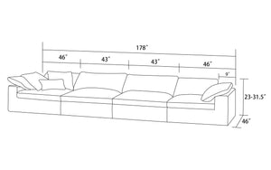 Indulge in the ultimate relaxation experience with this oversized modern modular sectional that takes comfort to a new level. Sink into the luxurious feather-down cushions that effortlessly conform to your body's contours, enveloping you in an embrace of softness. This modular sectional offers unrivaled versatility, allowing you to customize it according to your specific preference and mood. With the ability to rearrange the individual pieces, you can configure it to suit any occasion or setting, making it the perfect centerpiece for your living space. Enjoy endless possibilities with this remarkable piece of furniture.