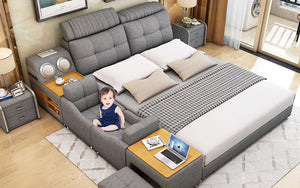 A smart bed is a cutting-edge sleeping solution that offers a range of advanced features and functions designed to enhance your sleep experience and overall well-being. In addition to its primary function as a comfortable place to sleep, a smart bed may come equipped with a variety of technologies and conveniences, such as built-in speakers, integrated lighting, USB charging ports, air purifier and massage chair. These features enable the bed to adapt to your unique needs and preferences, providing personalized comfort and convenience that can greatly enhance your daily life.