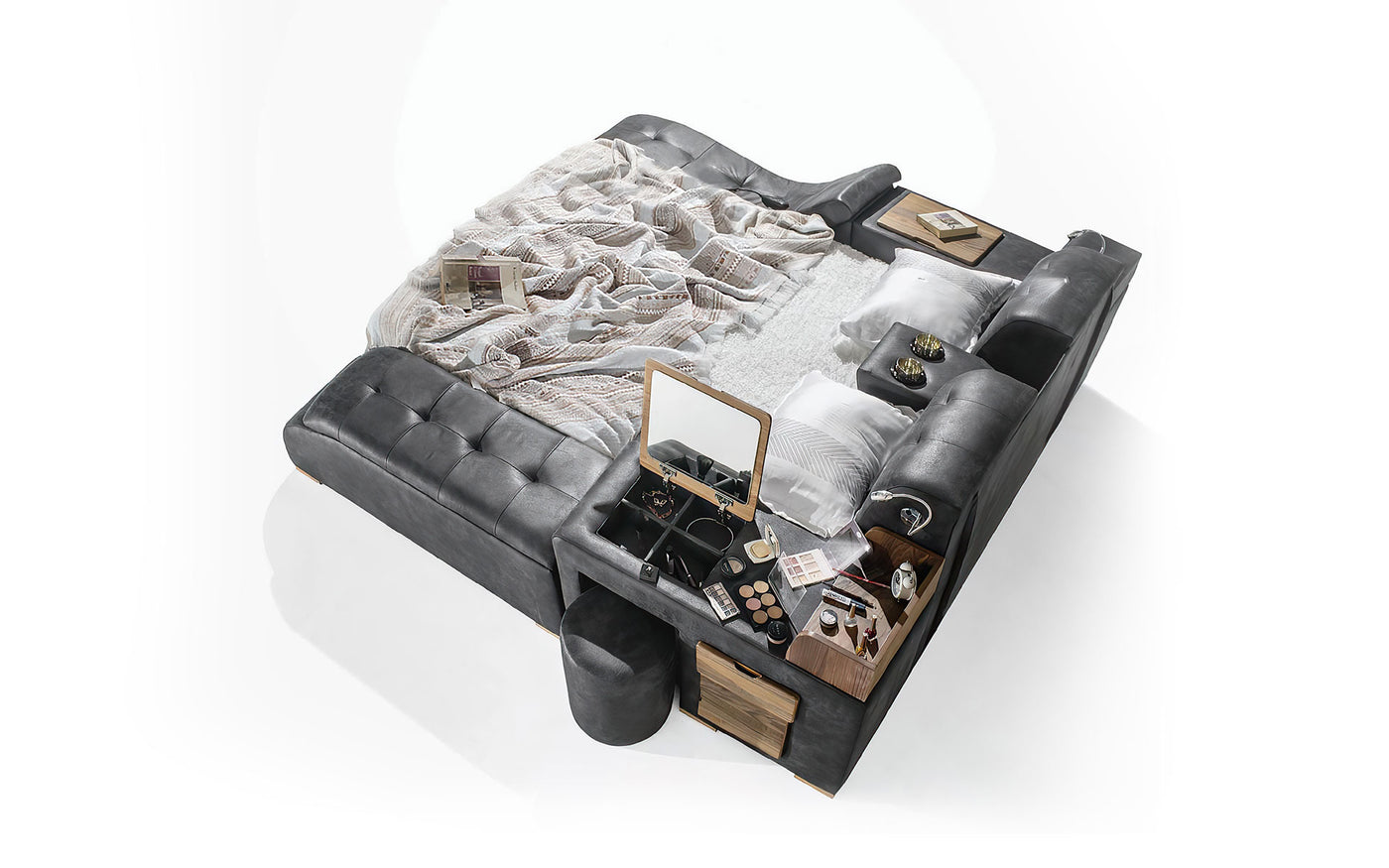 This multi-functional bed is so innovative! Not only gives us convenience to relax and work on this creative bed but also save up a lot of space for TV stand and chairs in the living room.