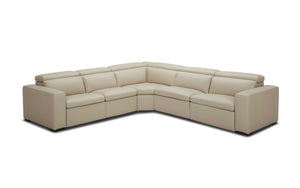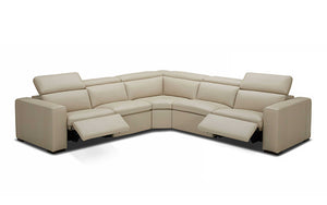 The Motique Modern Leather Sectional with Recliner is made of top grain Italian leather with a modern style. It includes three reclining chairs and a corner. The feet are made of solid wood so the sectional is durable and stable. It has five adjustable headrests, and the backrest is very user-friendly. This sofa is ideal for large gatherings and movie nights. Perfect for a contemporary home and lovers of comfortable lounging.