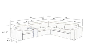 - Default Sets Include 1 Sectional (1*LAF Chair with Power Recliner + 1*Console + 1*Armless Chair with Power Recliner + 1*Corner + 1*Armless Chair + 1*RAF Chair with Power Recliner). Decorative items are not included.