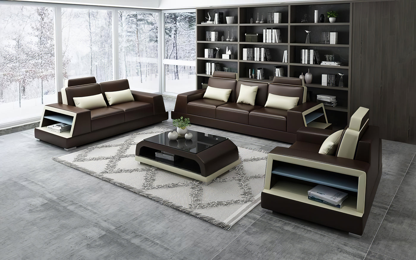 Introducing the Civia Sofa Set, a practical and stylish choice for any living space. This sofa set features built-in storage, offering a convenient solution for keeping your living room organized and clutter-free. With the option to add LED lights or cup holders, the Civia Sofa Set can be customized to suit your specific needs and preferences. Expertly crafted with premium materials, this sofa set provides lasting comfort and durability. Its sleek and modern design complements any interior decor, making it a versatile choice for any home. With ample seating and plush cushions, the Civia Sofa Set provides the perfect spot to relax and unwind. Upgrade your home with the Civia Sofa Set and enjoy the perfect blend of functionality and style.