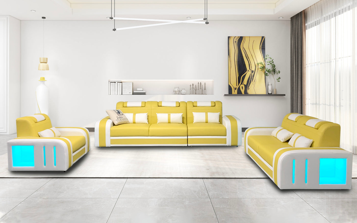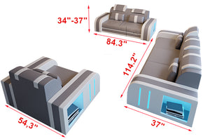 Ralutic Leather Sofa Set with LED Light