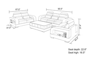 This smart sofa is absolutely beautiful, so elegant and sophisticated. It makes your space look very classy very well-made love the nice large size and to top it off the matching coffee table sets it off very nicely!!