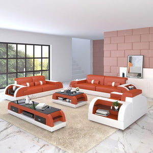 The Woofy Leather Sofa Set is available in 10 different colors of genuine Italian or bonded leather. This set features built in storage space at both ends of any piece, perfect for guests. A larger room or living room is a perfect fit for this sofa set.  This modern sofa set is inviting and stylish, instantly making it a conversation piece. To complete the look of your living space we recommend adding the matching coffee table. With the generous size of this sectional, family and friends will gladly socialize in comfort.