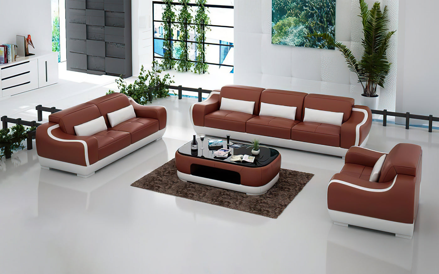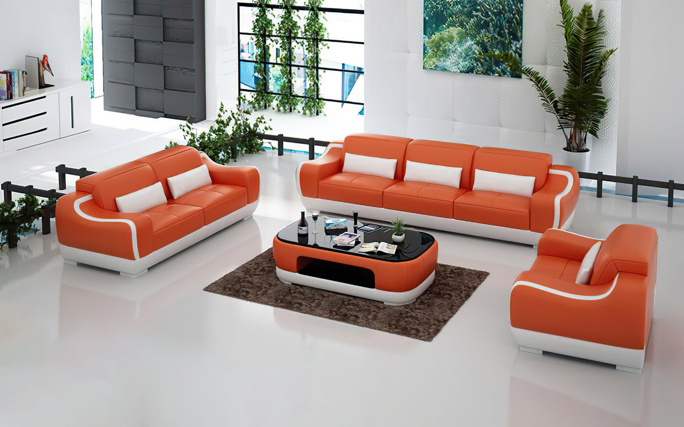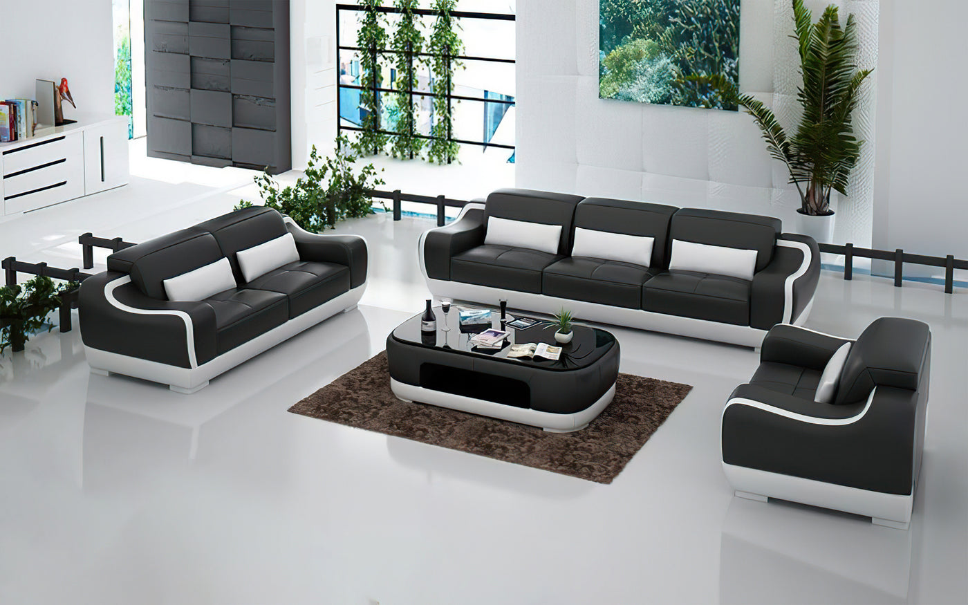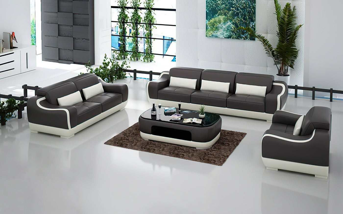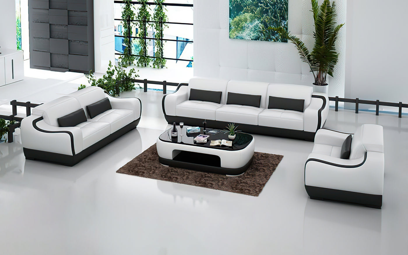 This smart sofa is absolutely beautiful, so elegant and sophisticated. It makes your space look very classy very well-made love the nice large size and to top it off the matching coffee table sets it off very nicely!!