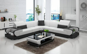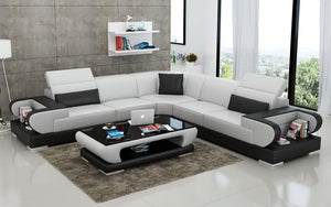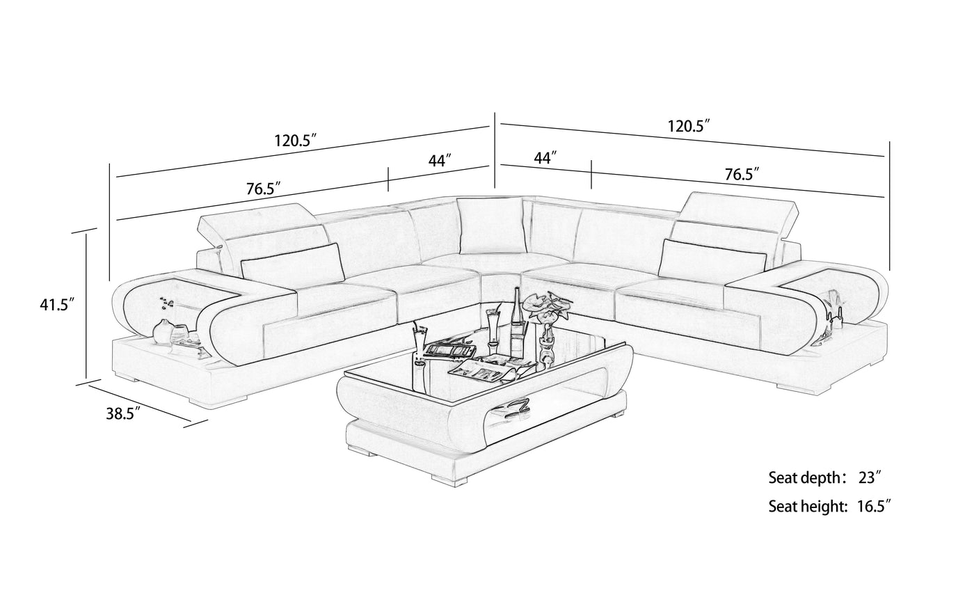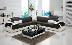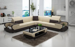 The Ezrael Modern Leather Sectional is handmade with genuine Italian or bonded leather. Choose your preferred color leather from a selection of 10 distinct colors. This leather sectional features two built in storage spaces big enough to display books or decorative items. Each top headrest is adjustable. This modern sectional is a stylish and chic addition to your living space. To complete the look of your living space we recommend adding the armless chair and coffee table. Cup holders and USB ports are recommended for larger families to optimize maximum enjoyment. An additional bed function makes a great movie night with the family or space for unexpected guests. With the generous size of this sectional, family and friends will gladly socialize in comfort.