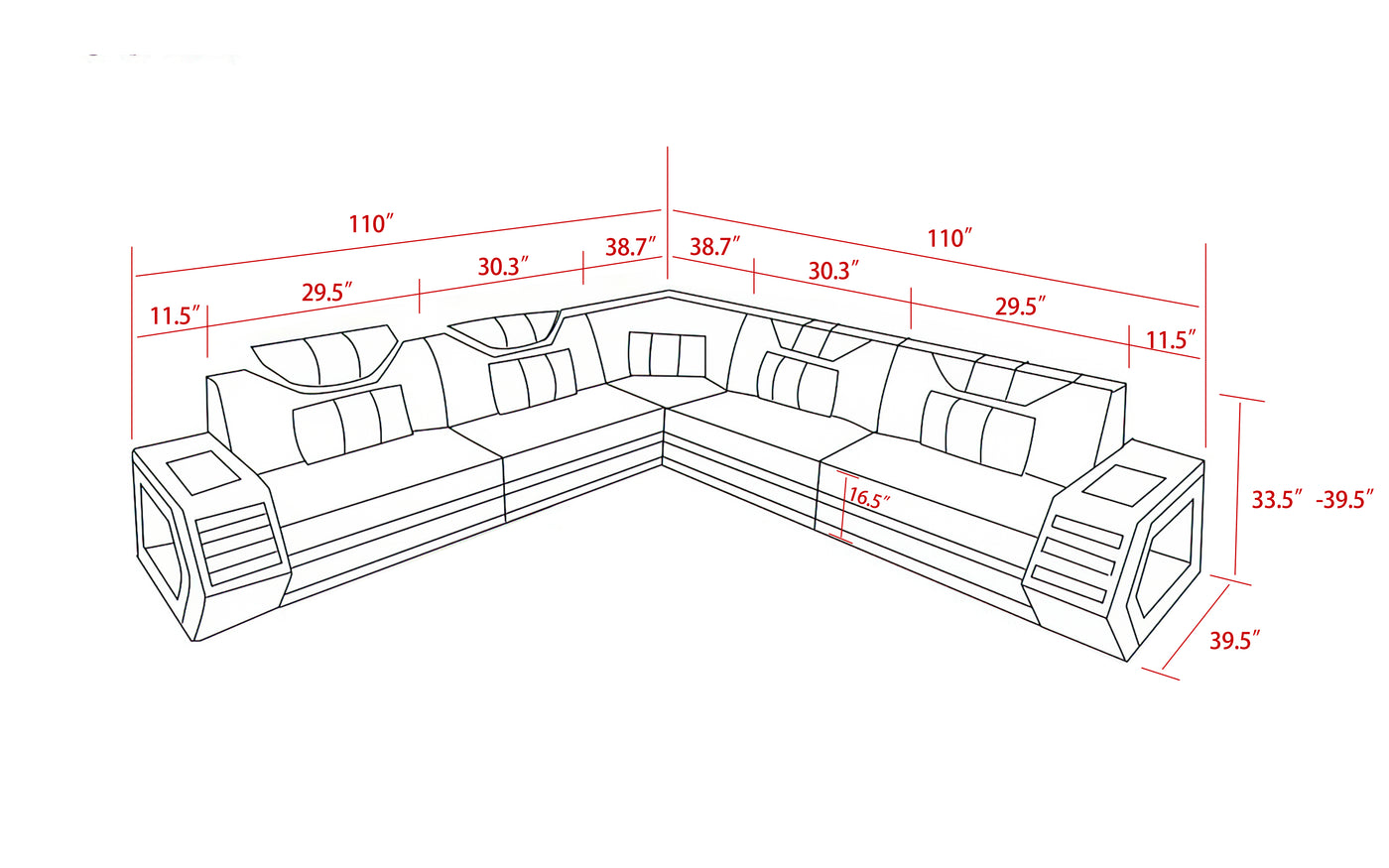Upgrade your living space with our customizable modern sectional sofas. With a variety of styles, colors, and sizes to choose from, you can create a sofa that's uniquely yours. Add-on features such as LED lighting, charging ports, cup holders, and a bed function offer even more customization options to create the perfect seating experience. Whether you're looking for a statement piece or a cozy nook, our custom modern sectionals offer flexibility and style to fit your needs. Don't settle for a traditional, one-size-fits-all sofa. Browse our collection today and start designing the sectional of your dreams!