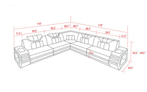 Say hello to the Mcmanu Modern Leather Sectional Sofa! Available in either top grain Italian leather or bonded leather, adjustable headrests, customizable LED lighting, cup holders, and USB ports. Whether you want to relax with a book, enjoy a movie night with friends, or simply lounge on the couch, this modern sofa has you covered. And with its sleek and modern design, it's sure to make a statement in any living room. Experience ultimate luxury and make a bold statement with the Mcmanu Sectional Sofa for your modern living room.